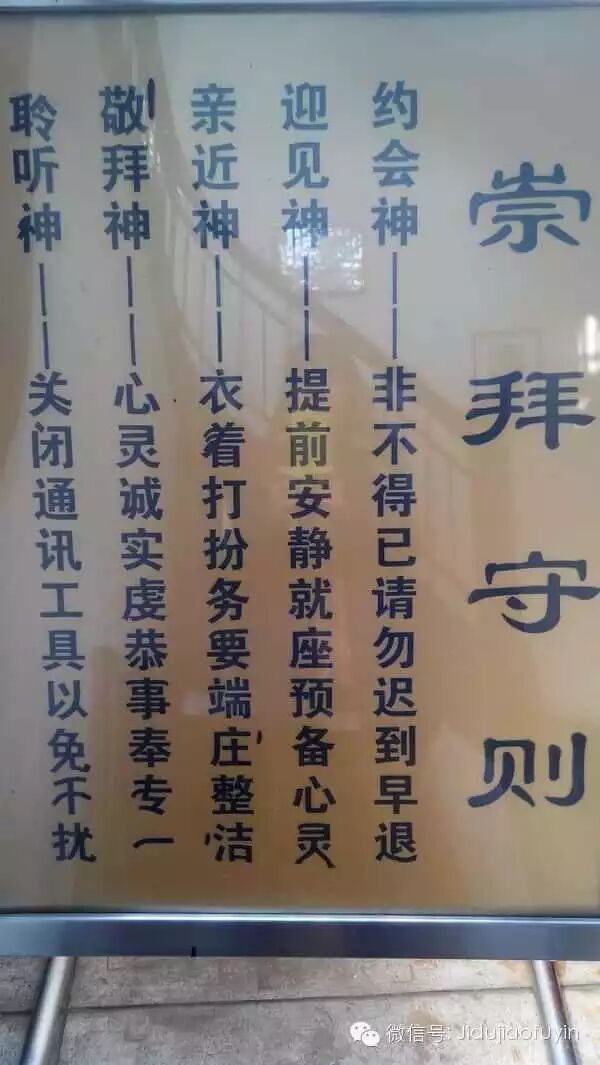 思澄堂的礼拜堂的门没开,我只能在外面看看。在过道里看到一块牌子“崇拜守则”,之所以拍下来,是因为这些规则,不正是我们平时做人的最基本礼数吗?