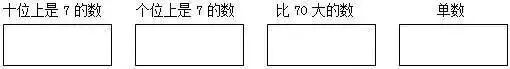 【分析】明确分类标准是答题的关键。从右边起,第一位是个位,第二位是十位。只要找准数位,对于“十位上是7的数”与“个位上是7的数”这两类应该不是很难。但要注意“77”这个数,个位和十位上都是“7”,因而前两个框里都要填。