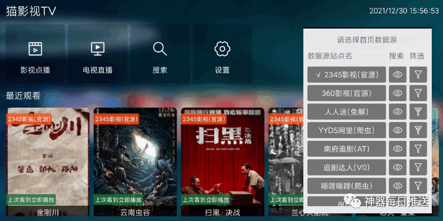 2、神器每日推送整理了多位大佬写的10余个爬虫片源接口,已检测并剔除了失效片源接口。