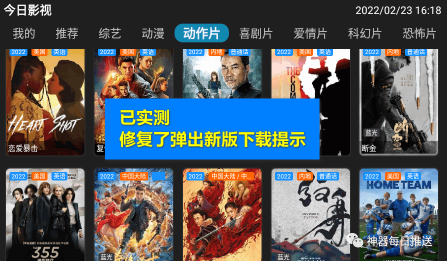 神器每日推送分享的这个版本是「今日影视TV9.9.9修复版」。类似「影视之家终极版」。
