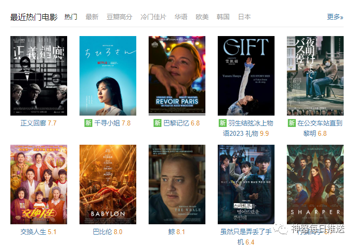 电脑浏览器打开豆瓣各个分类的详情页面,页面入口地址: