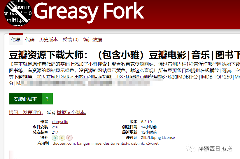 1、这其实是「豆瓣资源下载大师」脚本,版本已经迭代好几年了;