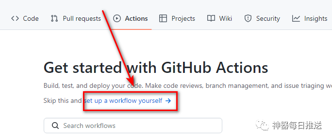 2 . 转到“Actions”,点击“Or skip this and set up a workflow yourself”