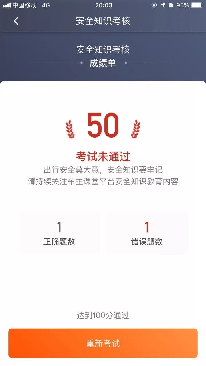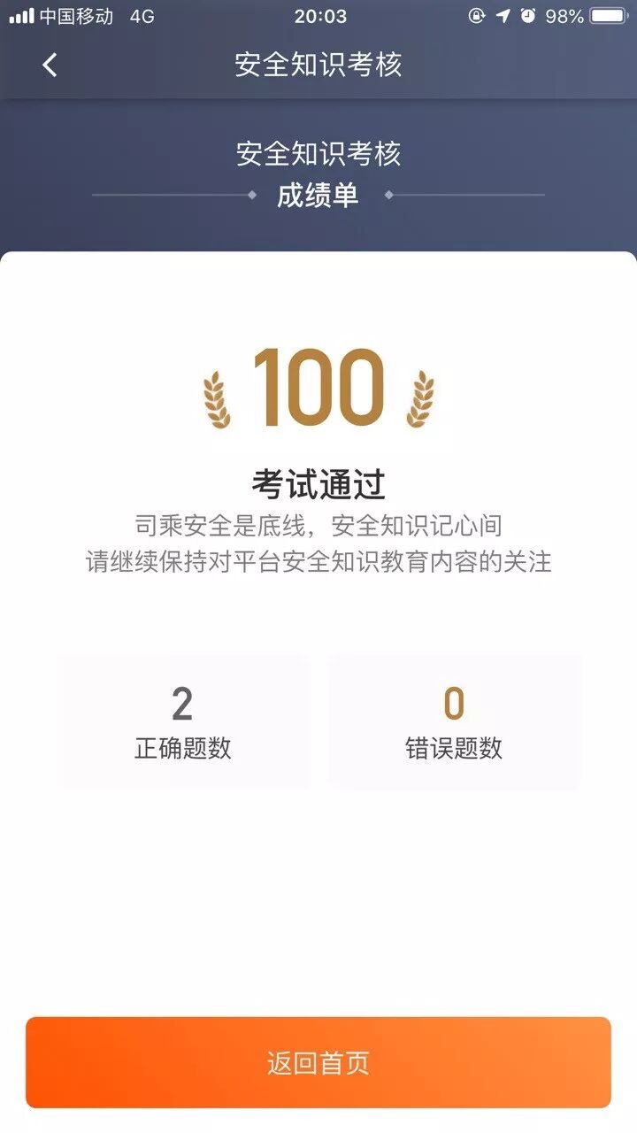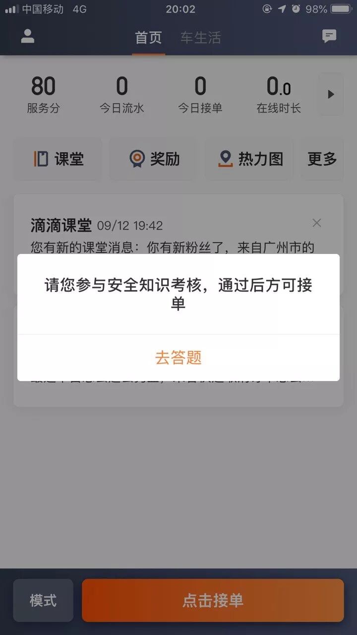 今天起持续十天,滴滴司机们每天打开车主端App,除了要进行人脸识别外,还需要参与安全知识问答。每次考试包括两道选择题,两题均回答正确才算通过,如果两题中有一题回答错误则为考试失败,司机需要重新考试直到通过,才能正常出车。